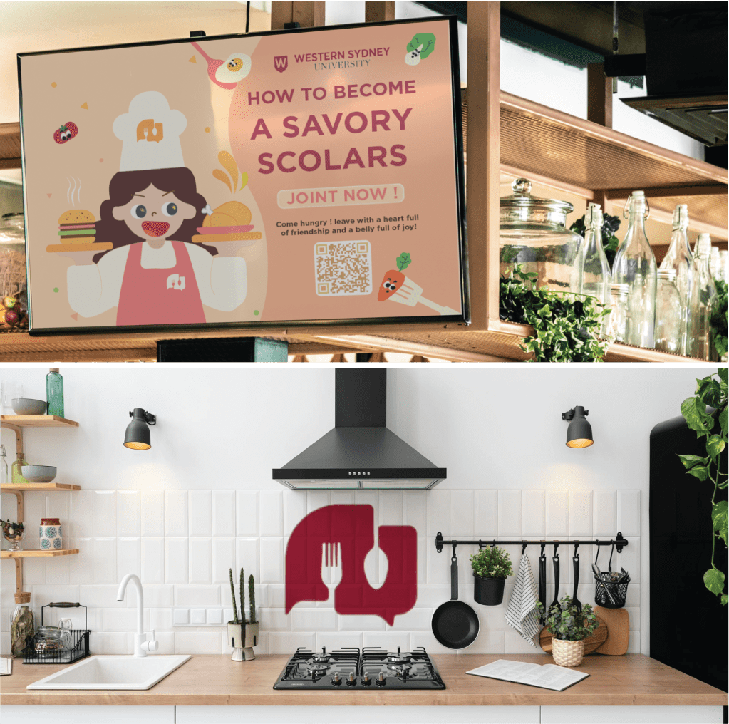 Savory Scholars is a conceptual cross-cultural cooking class designed to foster community among university students. The project involved creating a full brand identity and promotional suite—including posters, flyers, and a cookbook—to promote connection and stress relief through a shared love of food.