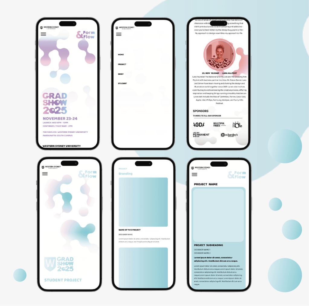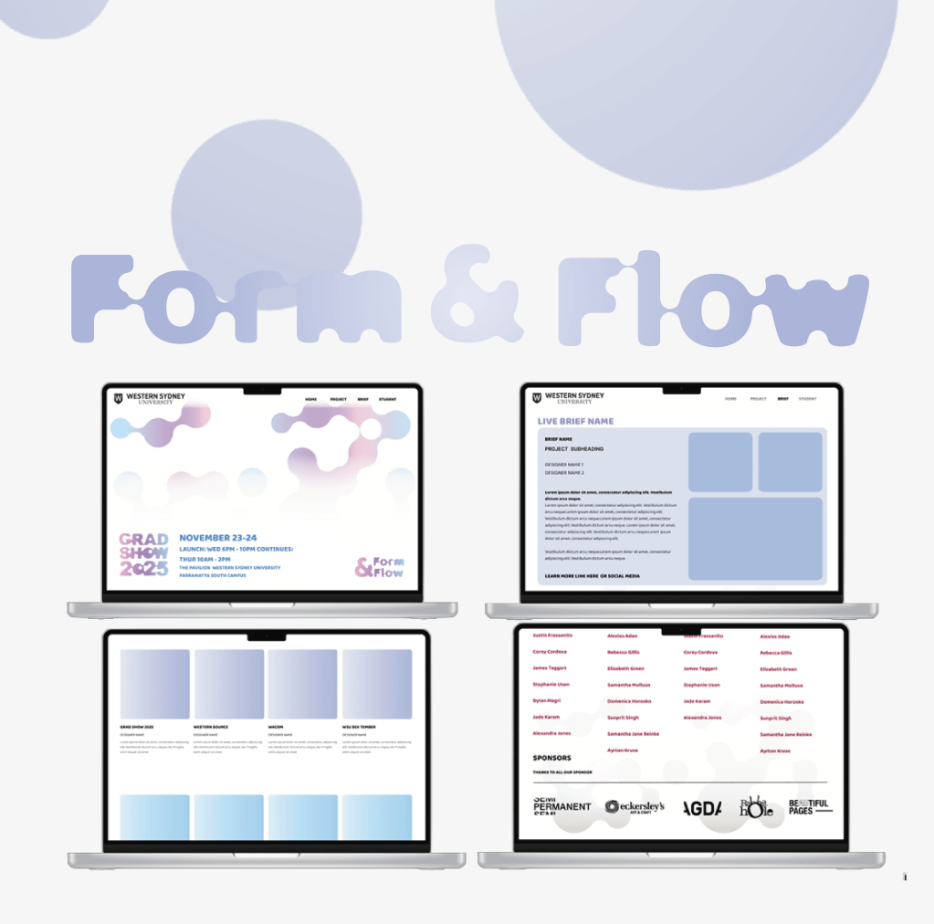 “Form & Flow” is a visual identity project for the 2025 Visual Communication graduates at Western Sydney University. It uses bubbles as a central metaphor to represent the graduating class.